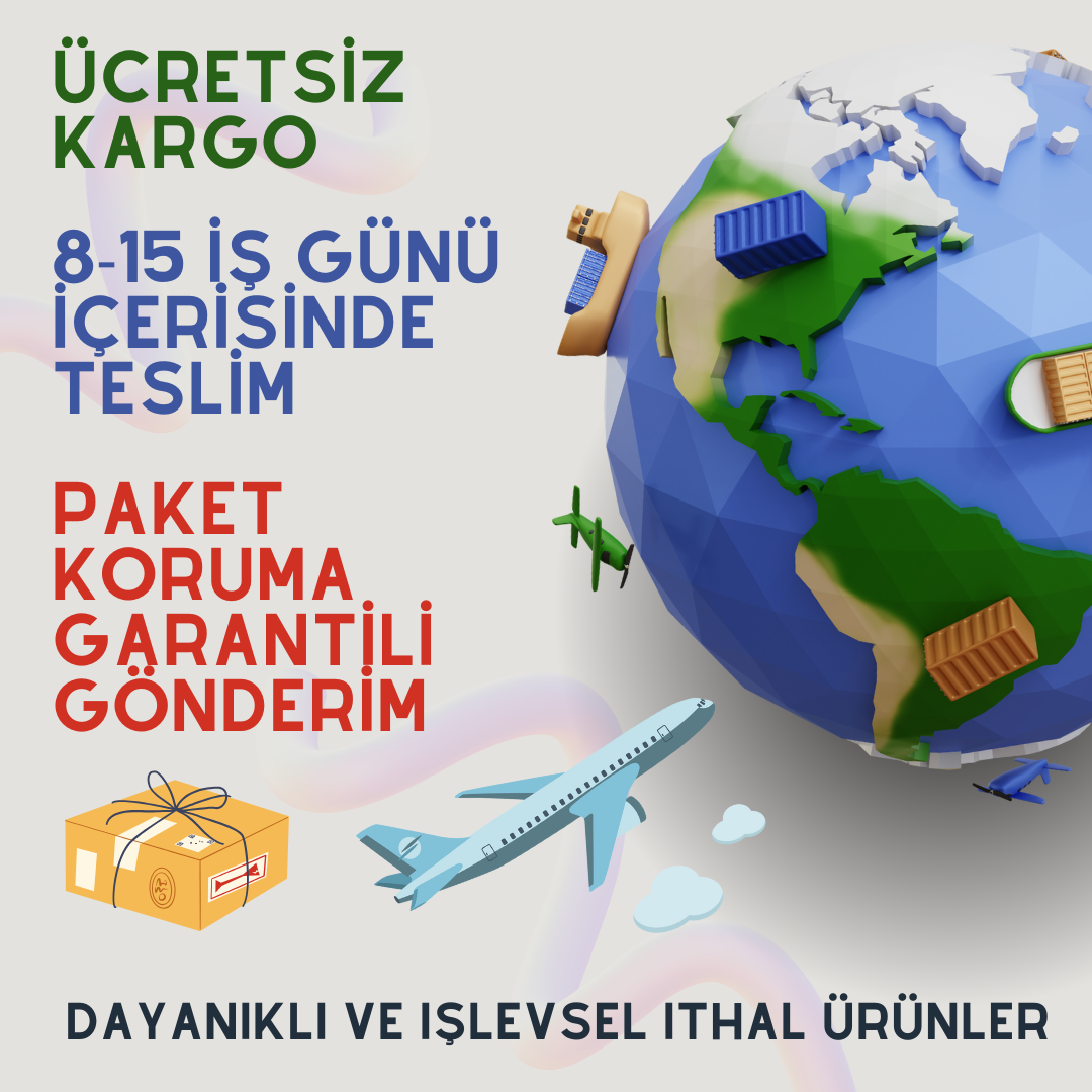 Dünya'nın her yerine ücretsiz kargo teslimatı yapıyoruz. Siparişiniz 8-14 iş günü içerisinde teslim edilir.